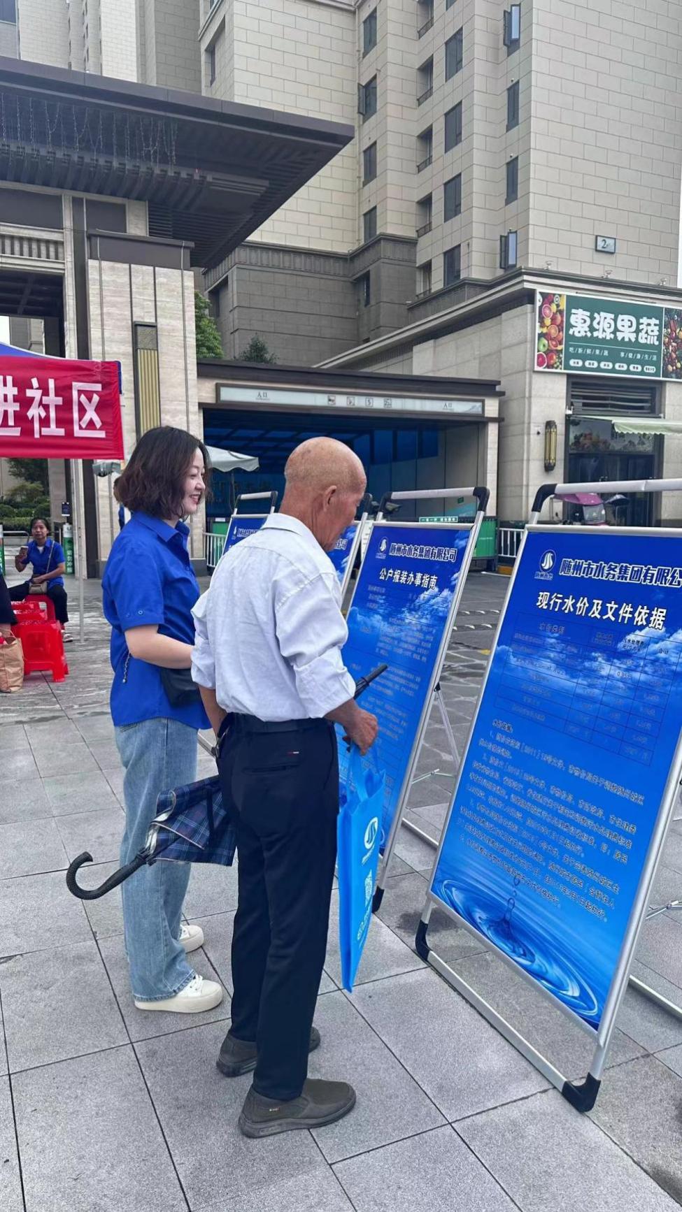 活動(dòng)現(xiàn)場(chǎng),市水務(wù)集團(tuán)志愿服務(wù)隊(duì)在小區(qū)門(mén)口廣場(chǎng)有序搭建宣傳展架、懸掛宣傳橫幅、發(fā)放供水宣傳資料,工作人員以飽滿(mǎn)的熱情接待每一位前來(lái)咨詢(xún)的用戶(hù)。