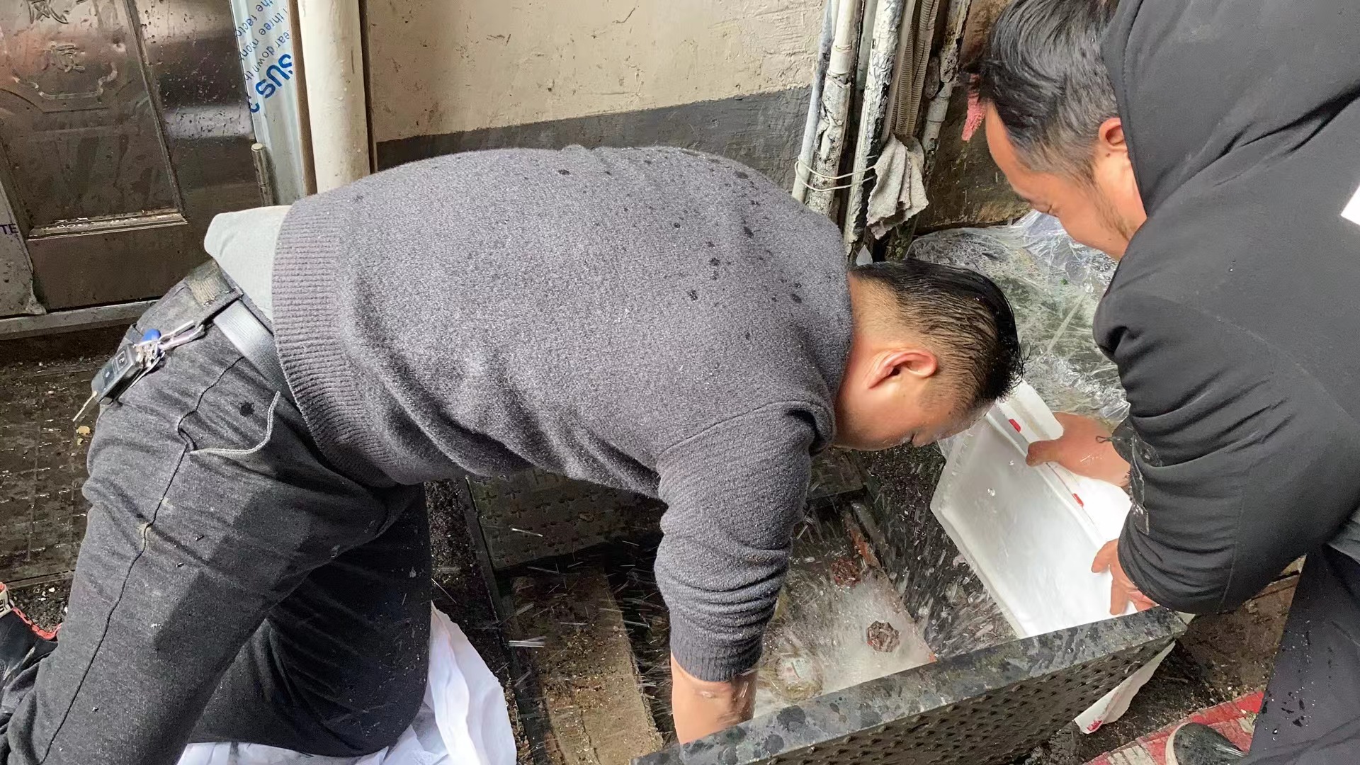 與此同時(shí),客戶服務(wù)中心的搶修人員在小區(qū)幫助用戶解凍通水,為了便于操作,搶修人員不戴手套跪在已經(jīng)上凍的表井池旁伸進(jìn)冰冷水中進(jìn)行維修,雙手凍得通紅,渾身直打顫,絕大多數(shù)人搶修人員的手、腳都凍傷了,但為了用戶們能夠盡快用上水,可他們卻義無(wú)反顧,“我們也知道冷,但是沒(méi)辦法,戴上手套不好操作,為讓用戶早些有水可用,我們一直都是這么做的”。為了用戶們能夠盡快用上水,他們的工作沒(méi)有停息過(guò)。