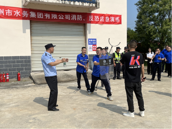 在反恐演練環(huán)節(jié),隨縣公安局民警首先為大家講解了盾牌、鋼叉等各種反恐防暴器具的使用方式和技巧。現(xiàn)場模擬一名“歹徒”持斧闖入封江水廠,防暴大隊民輔警快速響應(yīng),針對現(xiàn)場情況,果斷采取有效措施,運用盾牌、鋼叉等防爆器械,針對“歹徒”的各類暴力情形,采用三角隊形進行靈活處置,成功將“歹徒”制服。隨后,在民警指導(dǎo)下,市水務(wù)集團應(yīng)急救援隊開展了模擬反恐演練。