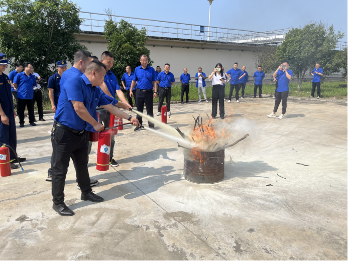 在演練環(huán)節(jié),隨縣大隊的官兵為大家講解了滅火器使用方法,并組織水務(wù)集團職工進行了實操。針對水廠特殊的環(huán)境條件,就科學(xué)做好工作進行了講解指導(dǎo)。