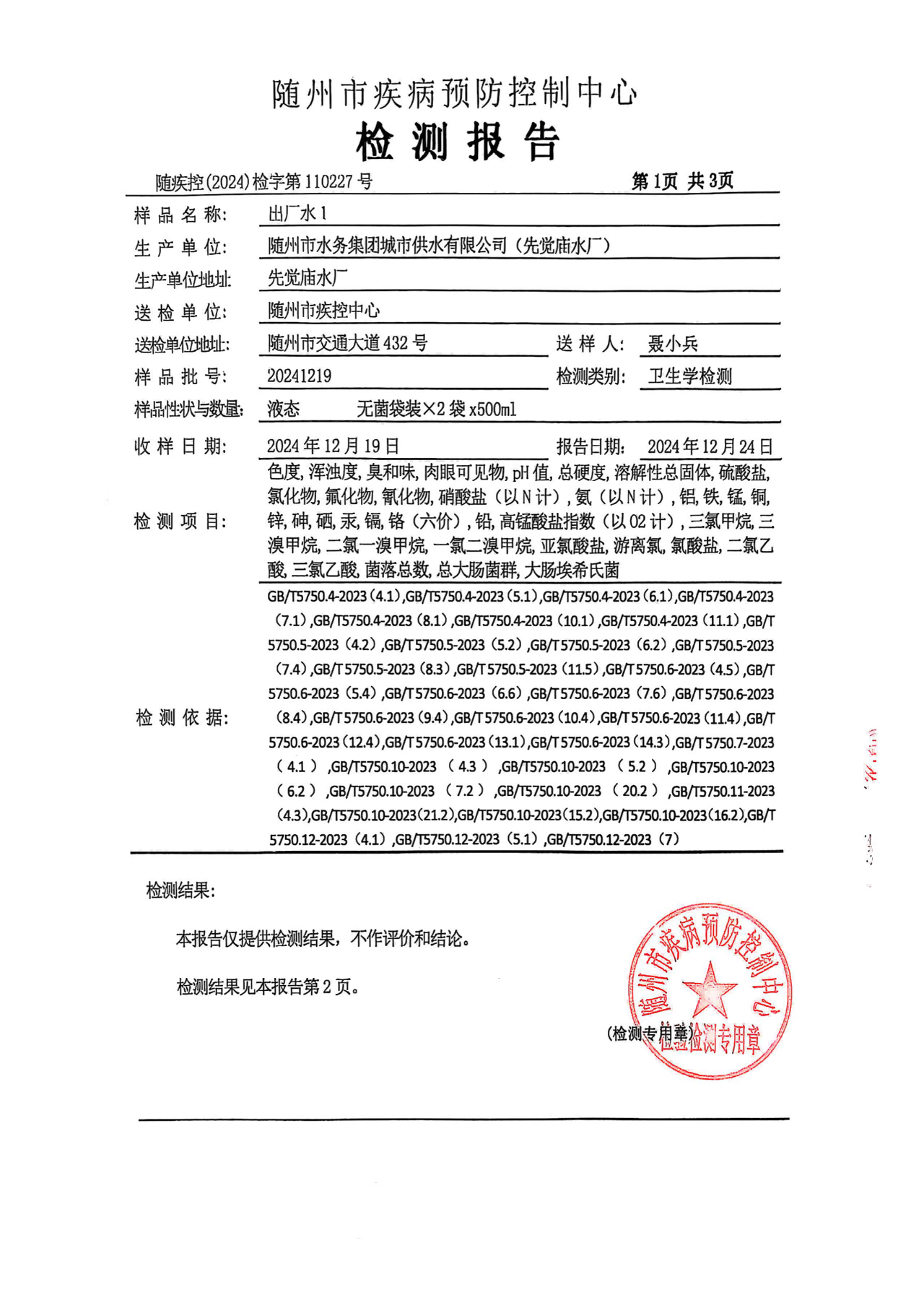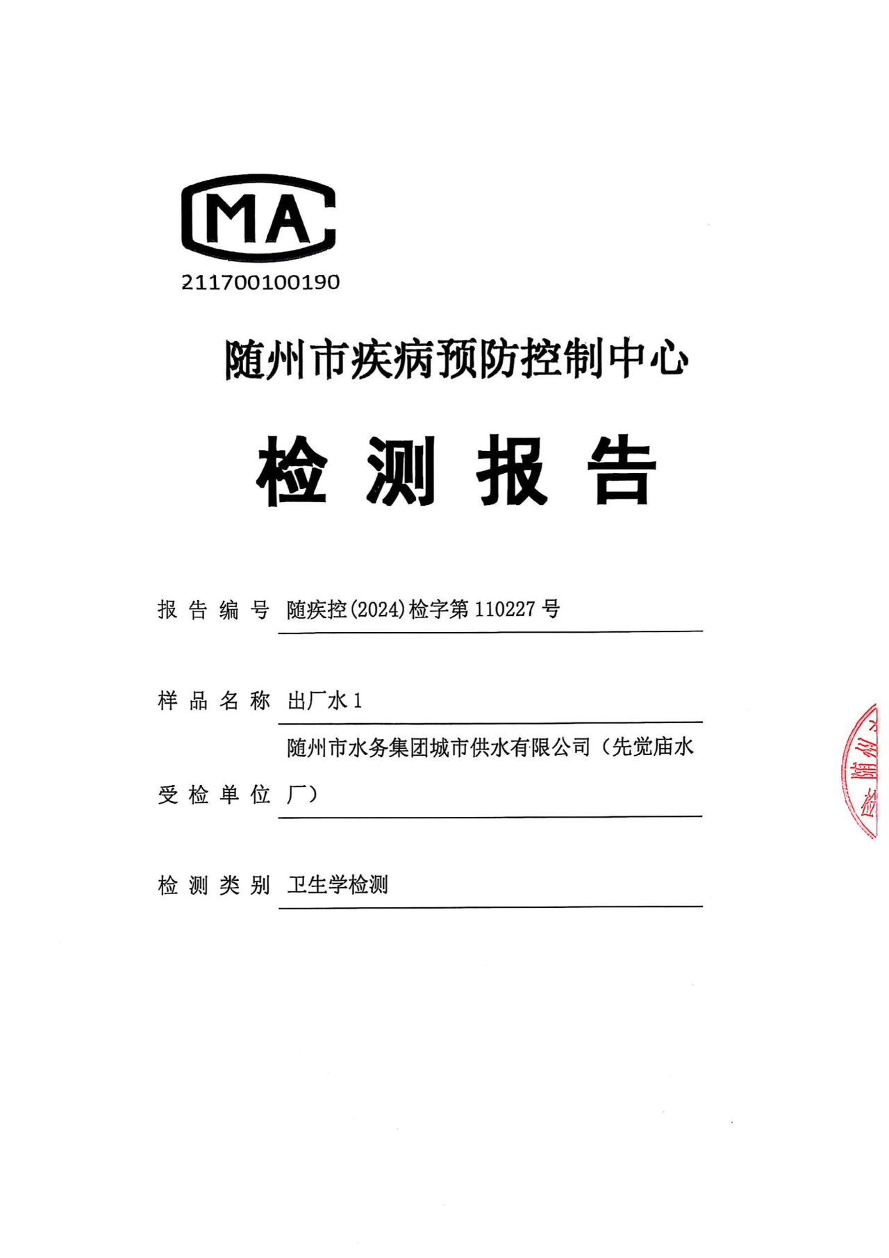 城市供水出廠(chǎng)水水質(zhì)檢測(cè)報(bào)告