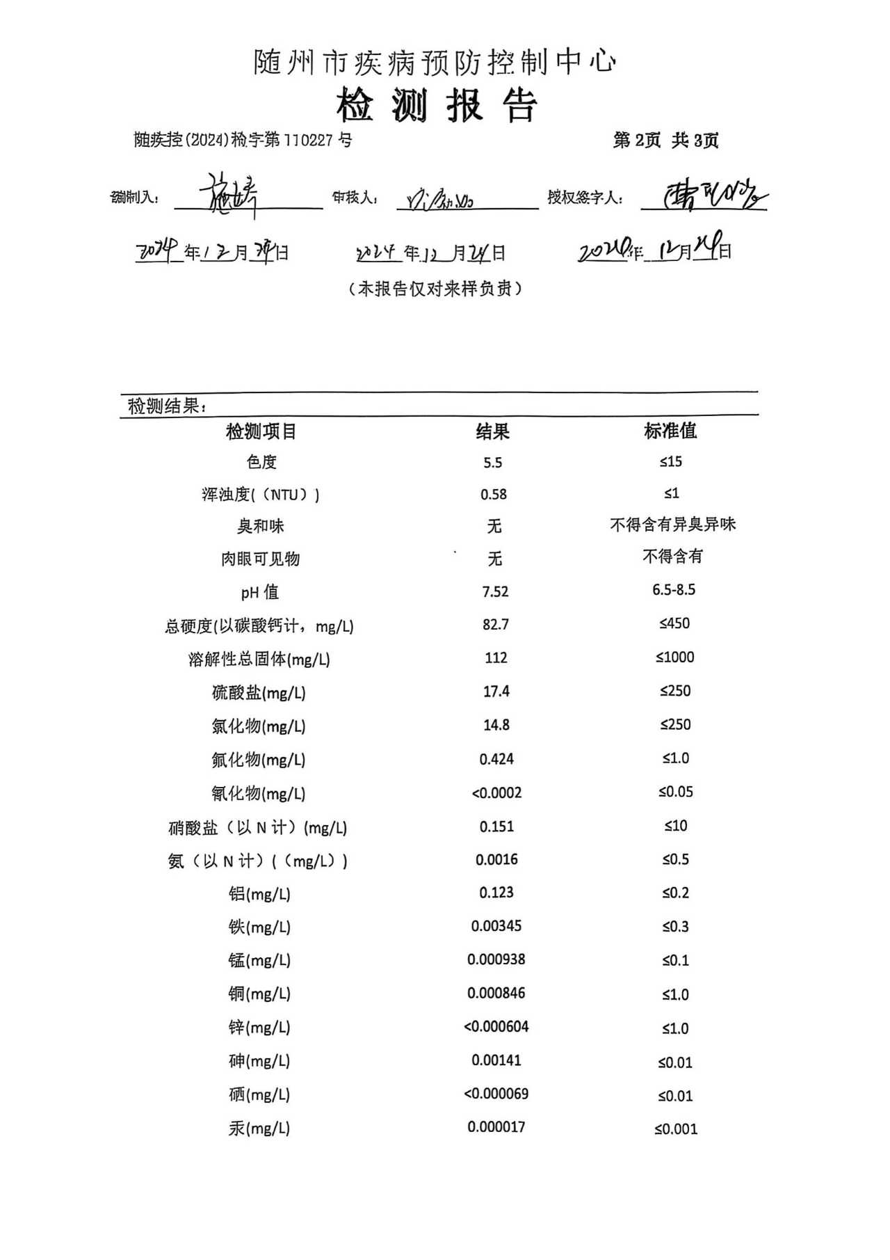 二、我公司在水質(zhì)管理上嚴(yán)格執(zhí)行兩級(jí)管理、三級(jí)檢測(cè)制度,出廠(chǎng)水水質(zhì)均符合國(guó)家《生活飲用水衛(wèi)生標(biāo)準(zhǔn)》GB5749-2022的要求,請(qǐng)廣大用戶(hù)放心使用。