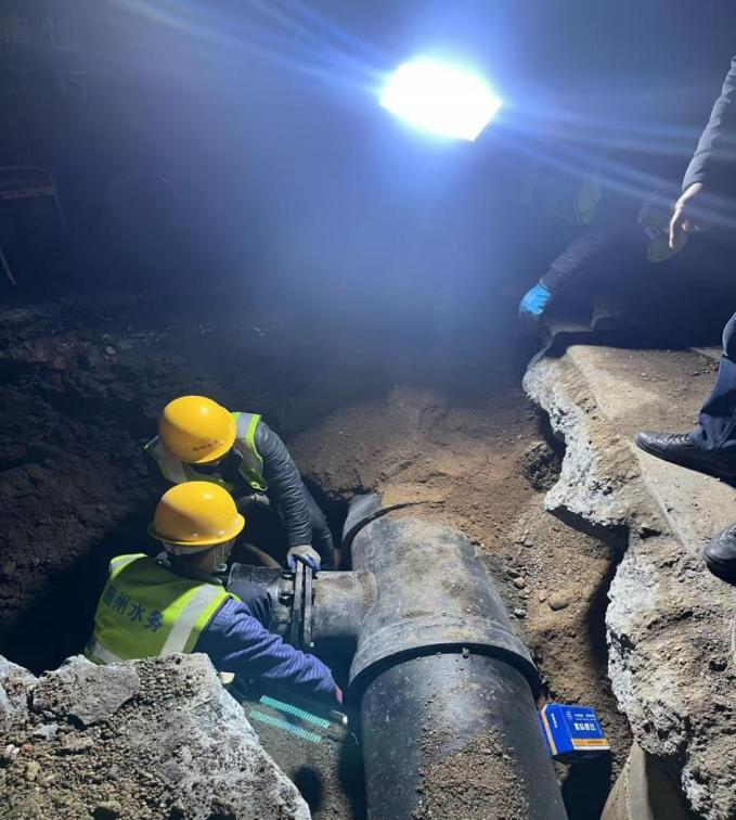 當(dāng)城市沉入夜色,清河路、鹿鶴大道等四處水務(wù)工地卻亮如白晝,隨州市水務(wù)集團建設(shè)工程公司20名“水務(wù)尖兵”化身“城市管道醫(yī)生”為城市供水管網(wǎng)進行精密的手術(shù)。