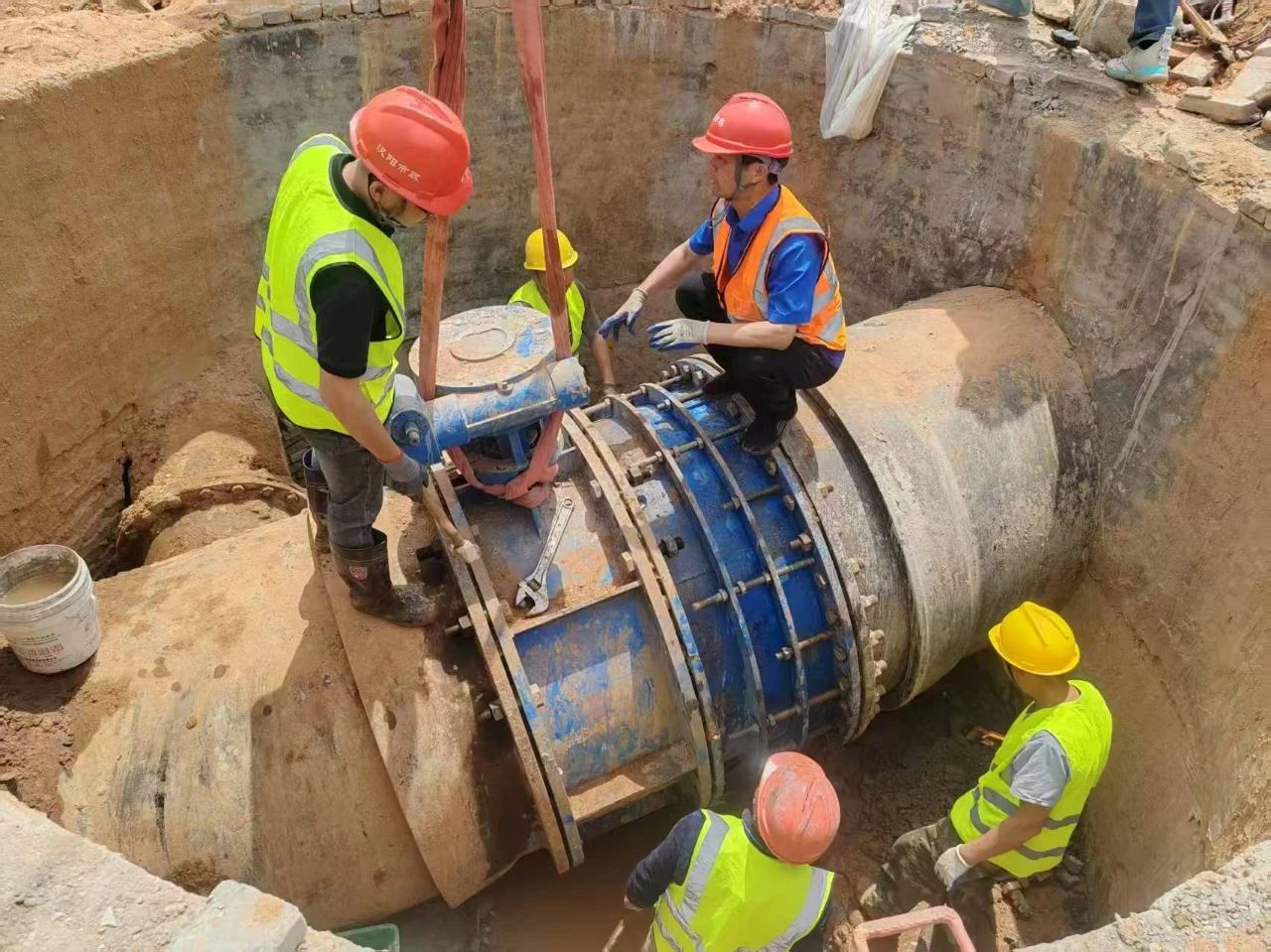“管道早一分鐘搶修好,市民就早一分鐘恢復(fù)用水。沒有條件創(chuàng)造條件也要上!”針對(duì)現(xiàn)場(chǎng)情況,周新和他的“黨員突擊隊(duì)”隊(duì)員們憑借多年來(lái)積累的豐富經(jīng)驗(yàn),制定了靈活有效的搶修方案。周新身體力行,突擊隊(duì)員們分工協(xié)作,搶修工作有條不紊地展開:關(guān)閉閥門、設(shè)置圍擋、清除覆土、查找漏點(diǎn)、抽排積水、修補(bǔ)管道、試壓通水……