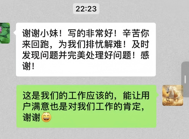這位用戶表示,要將隨州水務(wù)員工的專業(yè)與熱情分享給身邊人,直言“你們工作時(shí)熱情的態(tài)度值得我們學(xué)習(xí)”。面對(duì)用戶的盛贊,網(wǎng)格員一句“你再表揚(yáng)我就要飄了”的俏皮回應(yīng),讓這場(chǎng)服務(wù)與被服務(wù)的互動(dòng)更添溫情。